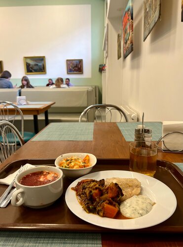 Приятная атмосфера, качественная вкусная еда. Обед в среднем 500-600р.
